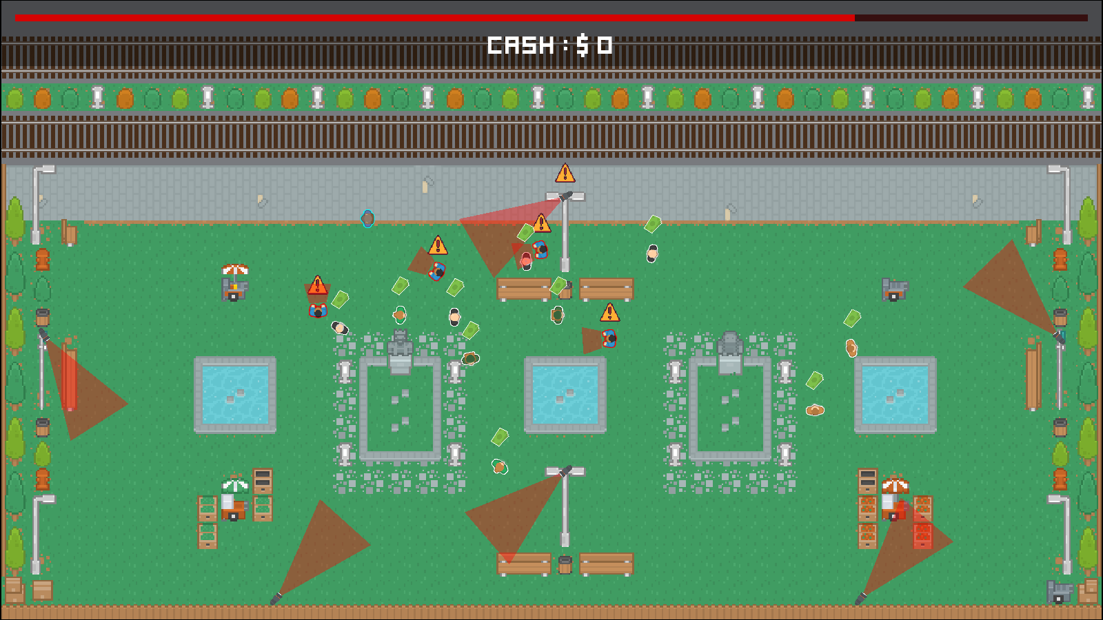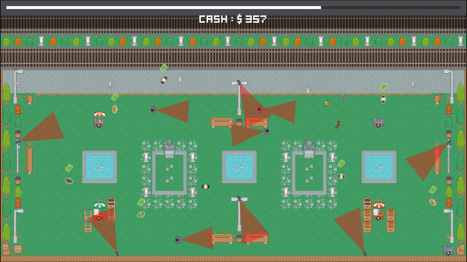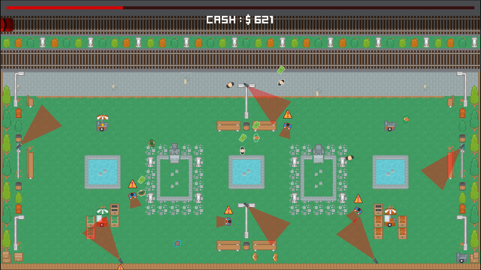 Top-down stealth gameplay – sneak past patrols and avoid detection.